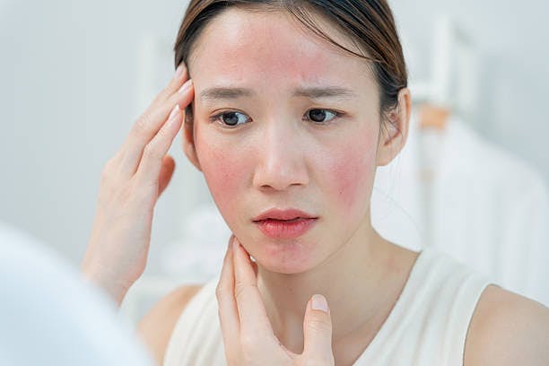 Rosacea is an inflammatory skin disorder that typically affects the cheeks, nose, chin, and forehead. While it can resemble acne or an allergic reaction, rosacea is distinct and requires its own management approach. It may worsen with certain foods, weather, or stress.